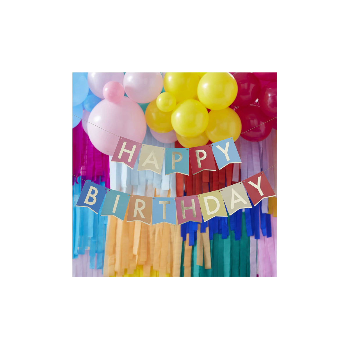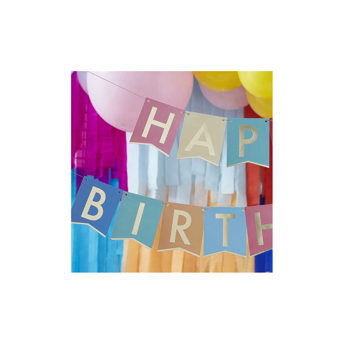 Φωτίστε το party σας με αυτό το υπέροχο πολύχρωμο πανό Happy Birthday με χρυσές λεπτομέρειες!
