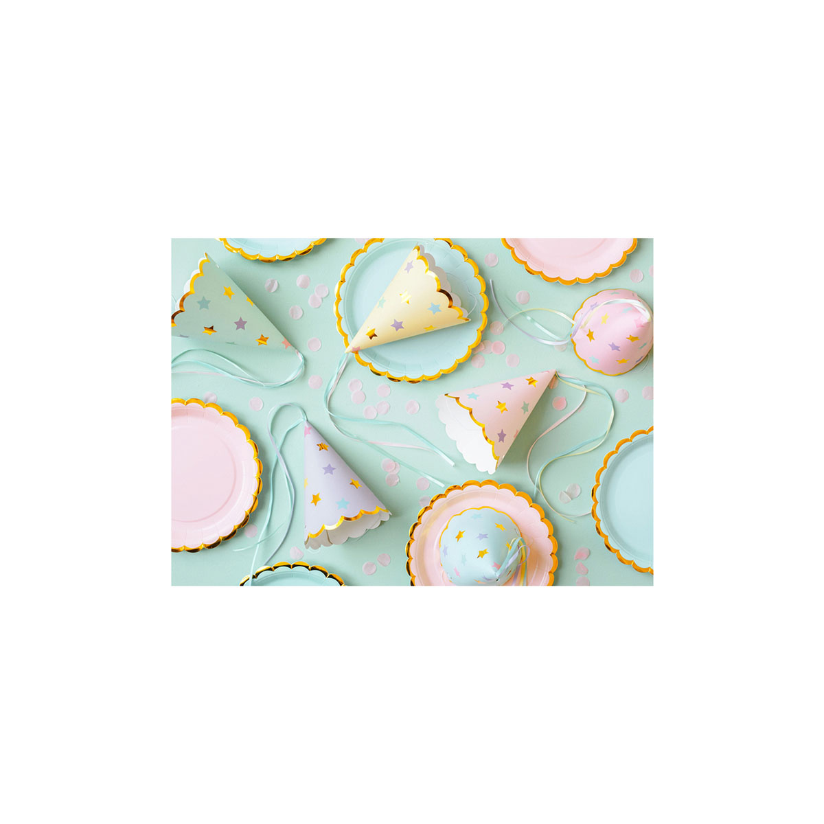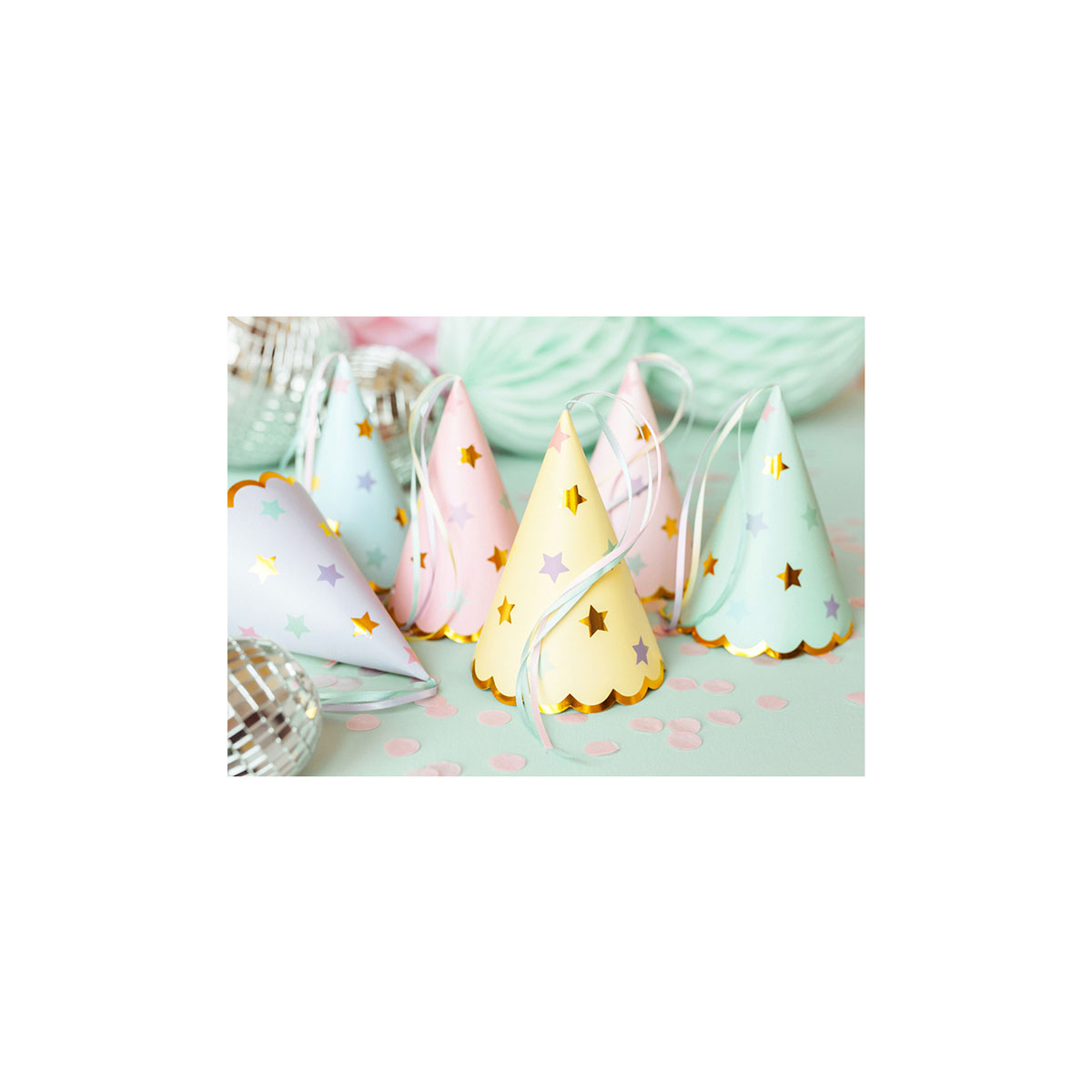 Καπέλα για πάρτι με πολύχρωμα και χρυσά μεταλλικά αστέρια.