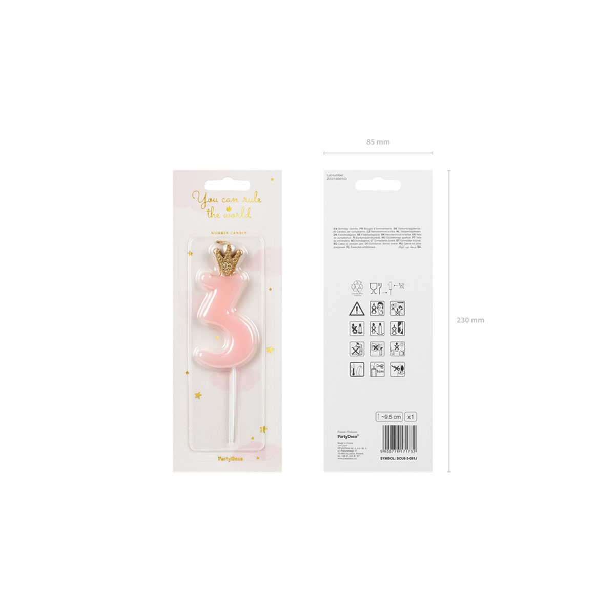 Κερί γενεθλίων Νούμερο 3 σε ροζ χρώμα.