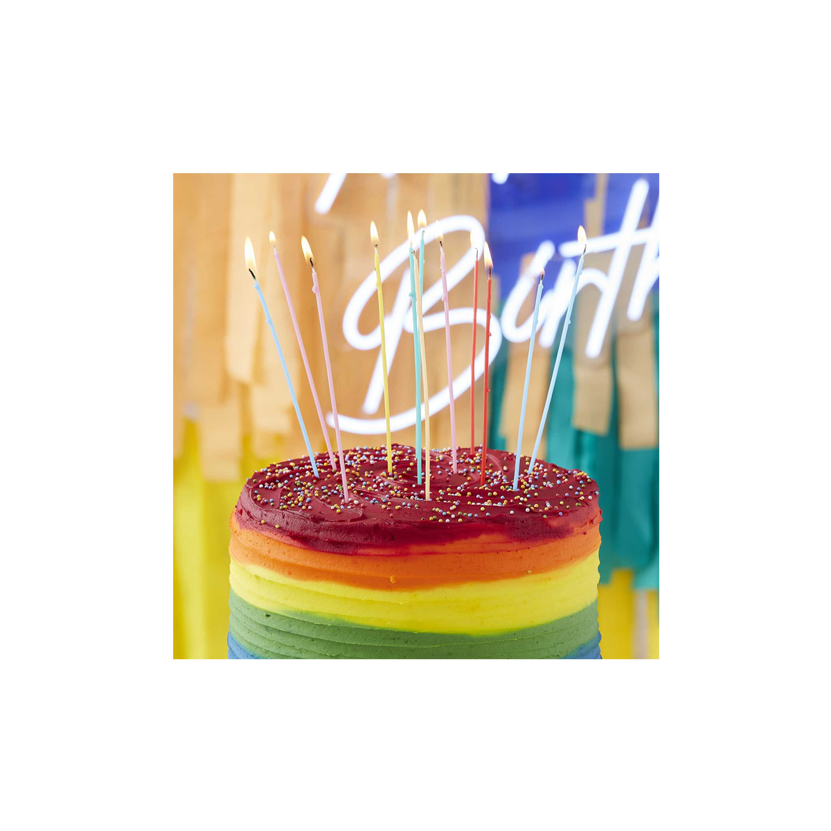 Το πακέτο περιέχει 12 ψηλά πολύχρωμα κεριά γενεθλίων Rainbow.