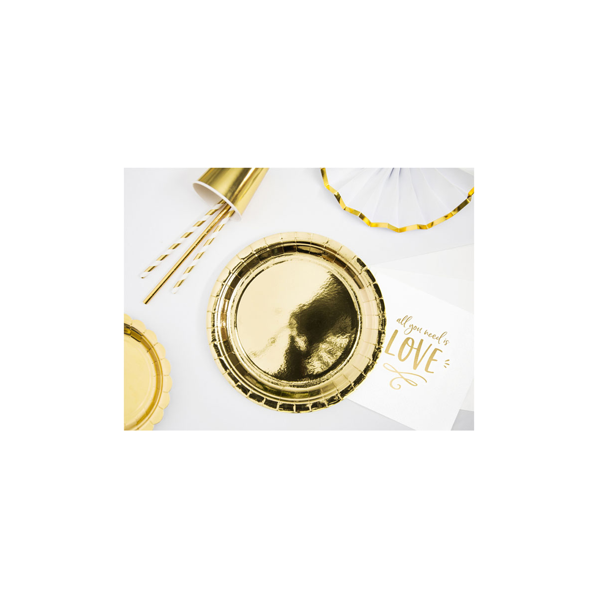 Στρογγυλά χάρτινα πιάτα σε χρυσή μεταλλική απόχρωση. Διαστάσεις: 23cm 6τμχ